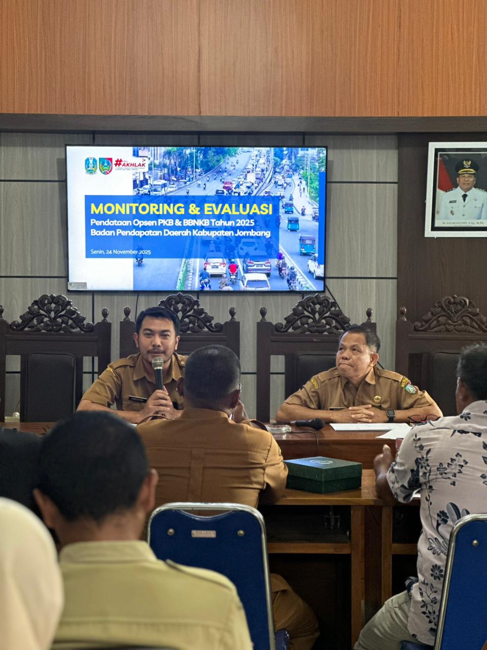 JOMBANG, Bapenda – Badan Pendapatan Daerah (Bapenda) Kabupaten Jombang kembali melanjutkan maraton Monitoring dan Evaluasi (Monev) Tahap Kedua Pendataan Opsen Pajak Kendaraan Bermotor (PKB) dan BBNKB Tahun 2025. Pada Senin (24/11/2025), giliran tim pendata se-Kecamatan Perak yang mendapatkan evaluasi kinerja.